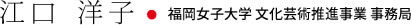 九州産業大学芸術学部美術学科卒業。美術科の講師として中学校・高等学校・工業高校に勤務。心の教室相談員としての勤務経験や、臨床美術士の資格も持つ。文化芸術推進事業事務局としては2年目となる。