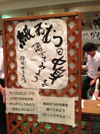2014年8月9日(土)、宗像ユリックスで開催された「世界一行きたい科学広場 in 宗像 2014」に福岡女子大学 国際文理学部 環境科学科3年生2名が参加し、「紙おむつの中身を調べよう」のブースを出展しました。