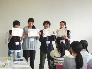 講師による、英語で行う授業を受講しました。1日目は、留学生へのインタビュー等を行い、2、3日目は、10グループに分かれて、興味のある国とトピックを決め、ポスタープレゼンテーションを行いました。各グループとも工夫を凝らした発表が行われ、閉講式では、優れたグループと個人が表彰されました。