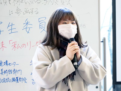 図書館美術館部門、地域連携センター、100周年記念誌編纂部会それぞれに所属する3名の学生が、学生委員としての活動を通じて自分自身の「あり方」を見つめなおした様子が見てとれる発表を行いました。