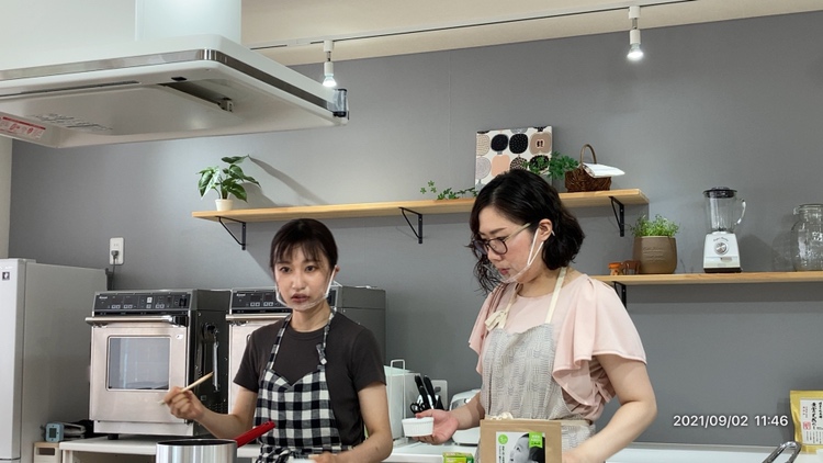 動画はハッピーフェスタの「栄養と運動ゾーン」において公開されていて、動画内では本学卒業生で新生堂薬局の管理栄養士として働いている田中里枝さんと新村奈央さんもレシピを紹介してくれています。