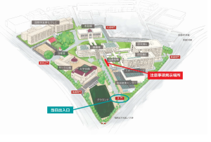 ・試験会場の下見日、試験当日ともに、自動車、自転車、バイク等での試験場構内への乗り入れを禁止しております