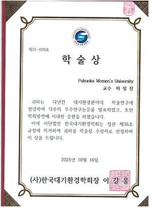 - 第68回韓国大気環境学会にて学術賞を受賞しました