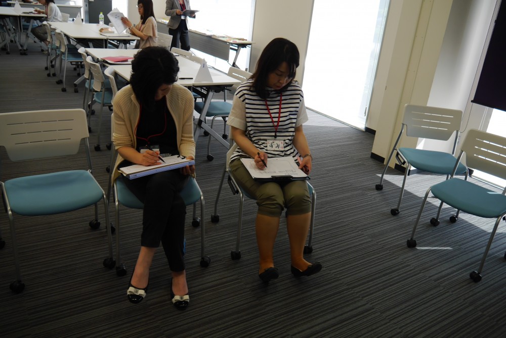 ワークショップやセミナーでは発散することが多いため、消化しきれないことも多々あります。今回は意識的にひとりでじっくりと振り返る時間を取りました。20分くらいかな?場所を変えても、教室の外に出てもOK、疲れていたら寝てもOK、とにかくひとりで静かにじっくりと2日間のことを振り返っていただきました。