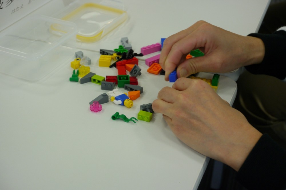 レゴブロックを使い、形を作ることで現在の自分や関心を寄せる課題、テーマを可視化していくこと、そして、現在の自分と関心を寄せるテーマとの関連性を見つけていくワークへと進みます。